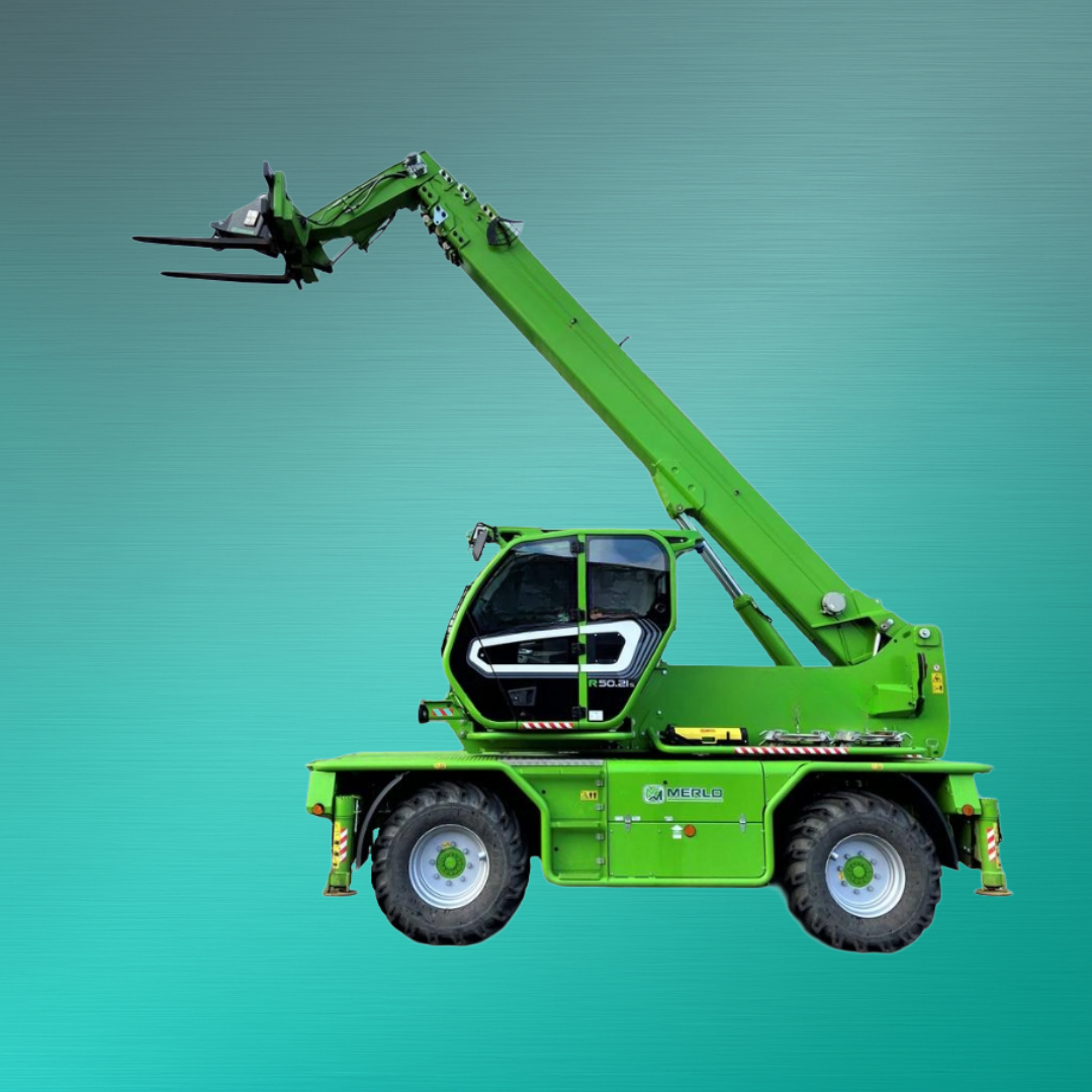Der Teleskopstapler Merlo 50.21 ROTO überzeugt durch Vielseitigkeit, Leistung und Sicherheit. Mit einer Hubhöhe von 21.000 mm, einer Tragkraft von 4.950 kg und einer Reichweite von 17.900 mm ist er die perfekte Lösung für Bau- und Montageeinsätze. Das Adaptive Stabilitätskontrollsystem (ASCS) liefert Echtzeitinformationen über Maschine und Last, während der CDC-Sensor Anbaugeräte automatisch erkennt. Dank permanentem Allradantrieb, drei Lenkarten und vier unabhängig steuerbaren Abstützungen bleibt der Stapler auch auf schwierigem Gelände stabil. Die ROPS/FOPS-Kabine mit großflächiger Verglasung sorgt für beste Sicht, während der drehbare Oberwagen mit 600° Bewegungsradius höchste Flexibilität ermöglicht.