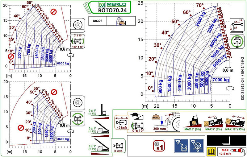 Der Teleskopstapler Merlo 70.24 S ROTO ist ein echtes Schwergewicht unter den Rotostaplern. Mit einer Hubhöhe von 24.200 mm, einer Tragfähigkeit von beeindruckenden 7.000 kg und einer Reichweite von 20.500 mm ist er bestens geeignet für anspruchsvollste Baustellen und schwere Hebeeinsätze. Das Adaptive Stabilitätskontrollsystem (ASCS) mit Digitaldisplay sorgt für maximale Sicherheit, während der CDC-Sensor Anbaugeräte automatisch erkennt. Vier unabhängig steuerbare Abstützungen, hydropneumatische Federung und permanenter Allradantrieb garantieren Stabilität und Flexibilität. Die großzügige ROPS/FOPS-Kabine mit 4,3 m² Glasfläche bietet besten Komfort und Rundumsicht. Ein starker Partner für große Projekte.